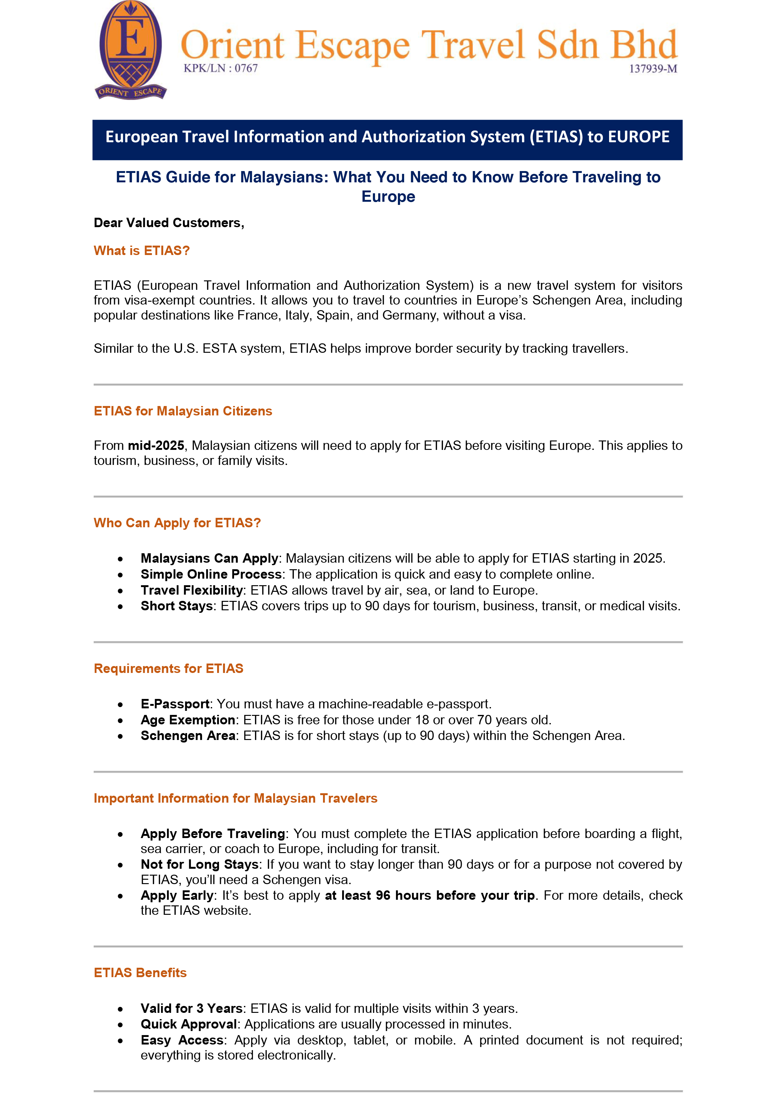 ORIENT ESCAPE TRAVEL (IT, Sales & Marketing Division) No. 2, Unit D-11-1A, Menara Suezcap 1, KL Gateway, Jalan Kerinchi, 59200 Kuala Lumpur, MALAYSIA.